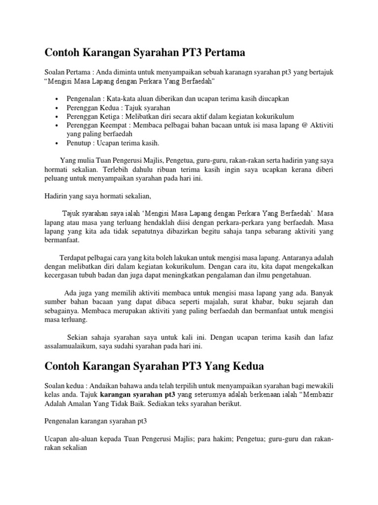 Contoh Karangan Syarahan Pt3 Format Pendahuluan Terbaik